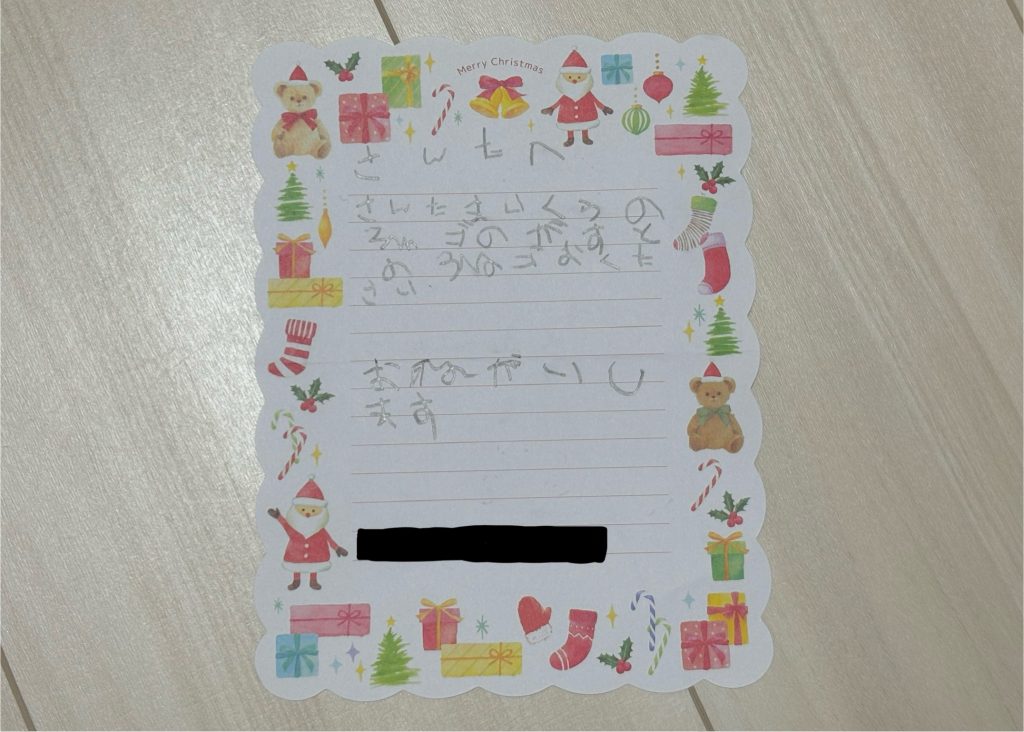 我が家では、幼稚園入園からサンタさんへお手紙を書いてツリーの下に置くようにしています。